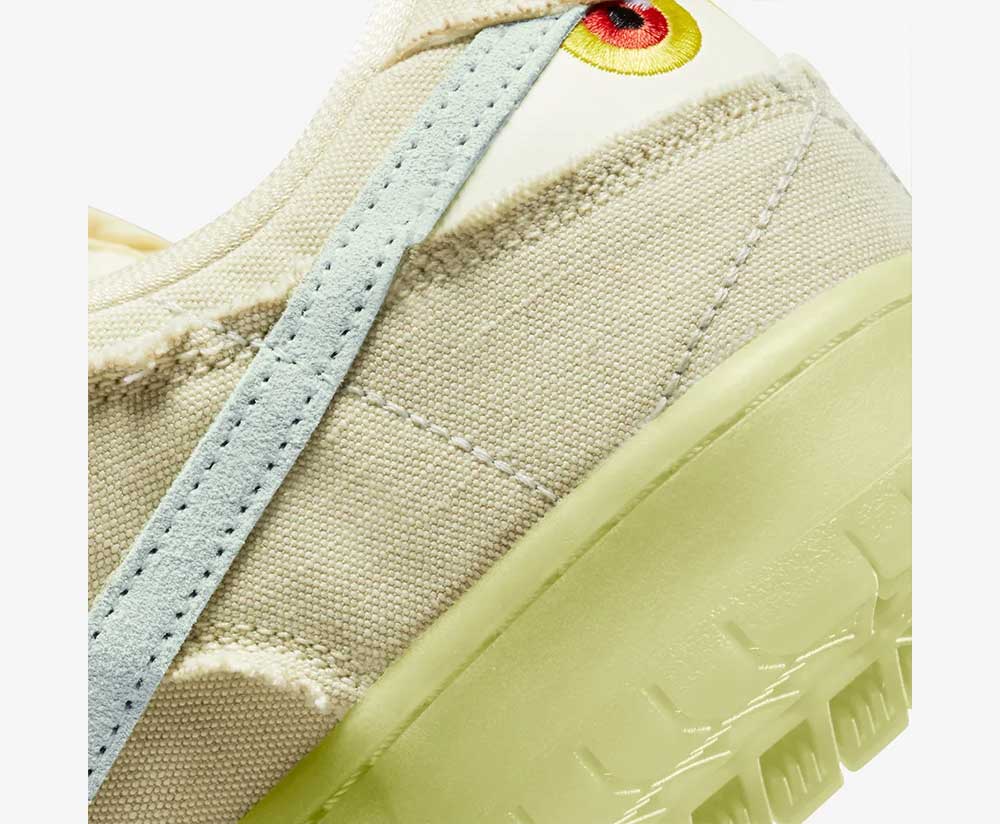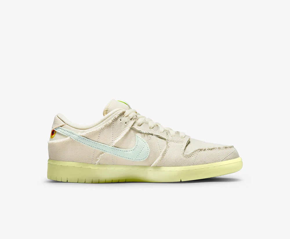 Đôi giày Nike Dunk Low SB 'Mummy' mang mã DM0774-111 là một bước chào mừng Halloween đầy ấn tượng, đắm chìm trong thiết kế độc đáo lấy cảm hứng từ hình tượng quái vật celluloid cổ điển. Bề mặt vải canvas ở phía trên được ánh sáng bởi màu trắng nhạt, tạo nên sự nổi bật với các đường khâu trang trí đồng màu và những cạnh có vẻ như đã trải qua thời gian, có khả năng được xé ra để bộc lộ lớp lót da lộn màu xám xanh.