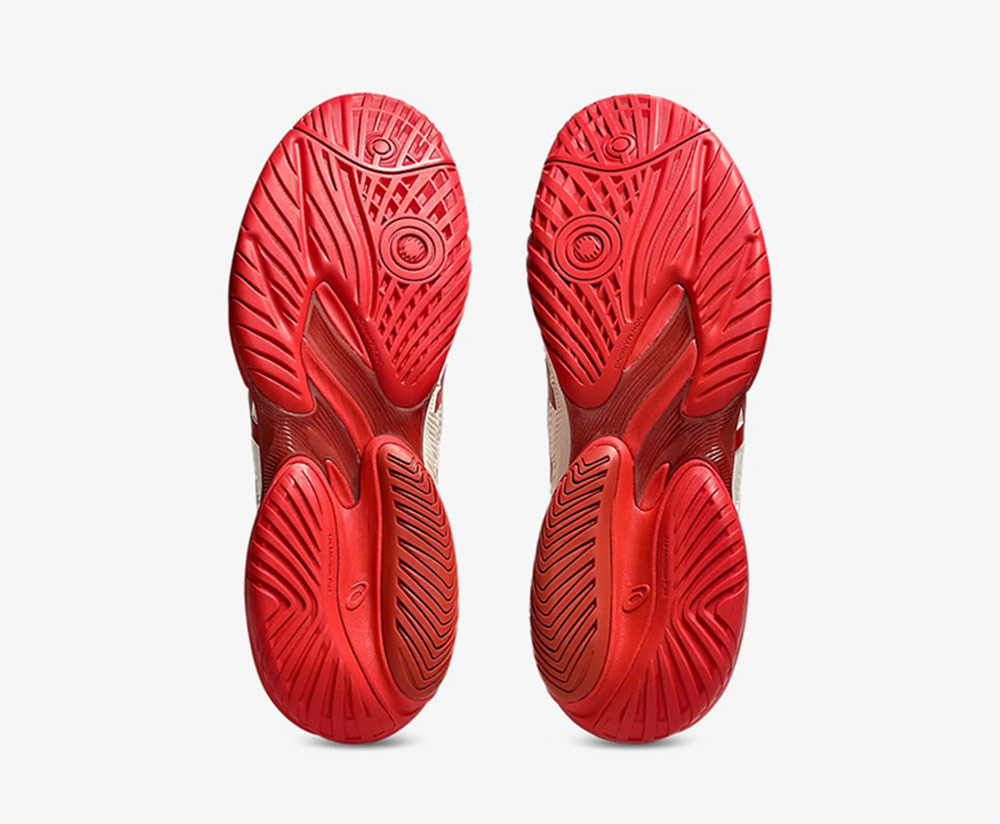 Không chỉ dừng ở vẻ ngoài, Court FF 3 Novak còn hội tụ những công nghệ tiên tiến: Đệm FlyteFoam siêu nhẹ, đàn hồi tốt, mang lại cảm giác êm ái suốt quá trình thi đấu. Twistruss Midfoot Support hỗ trợ di chuyển ngang và đổi hướng nhanh, giúp người chơi linh hoạt trong từng pha bóng. MONO-SOCK Fit System cấu trúc ôm chân, giữ form chắc chắn, hạn chế chấn thương. Đế AHAR+ cao su chống mài mòn, đảm bảo độ bám và tuổi thọ lâu dài, thích hợp cho nhiều mặt sân. Bên cạnh đó, phần upper Asics Court FF 3 Novak 'Cream Classic Red' thoáng khí giúp kiểm soát độ ẩm, tạo cảm giác dễ chịu ngay cả trong những trận đấu kéo dài nhiều giờ.